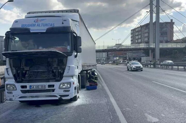 Kocaeli'nin Gebze ilçesinde seyir halindeyken motor kısmından alev alan tırda yangın meydana geldi. İtfaiye...