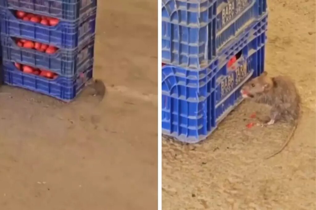 Vatandaş, kelam konusu canlının fare olduğunu ve satılmaya hazırlanmış domatesleri yediğini gördü. O anları görüntüleyen vatandaş, “Örnek mahallesi pazarı, işte yediğimiz sağlıklı ürünler” diyerek isyan etti.